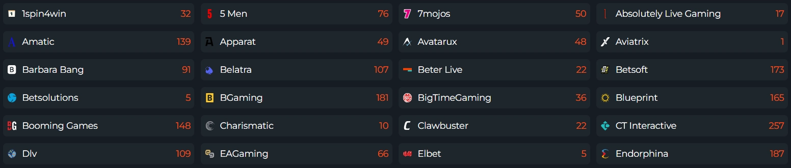 Vijftig verschillende game-ontwikkelaars zorgen voor een gevarieerd spelaanbod. Pragmatic Play, NetEnt en Play’n GO leveren de meeste titels, aangevuld door innovatieve games van Betsoft, Endorphina en Spinomenal. Deze diversiteit aan studio’s garandeert wekelijks nieuwe spelreleases.