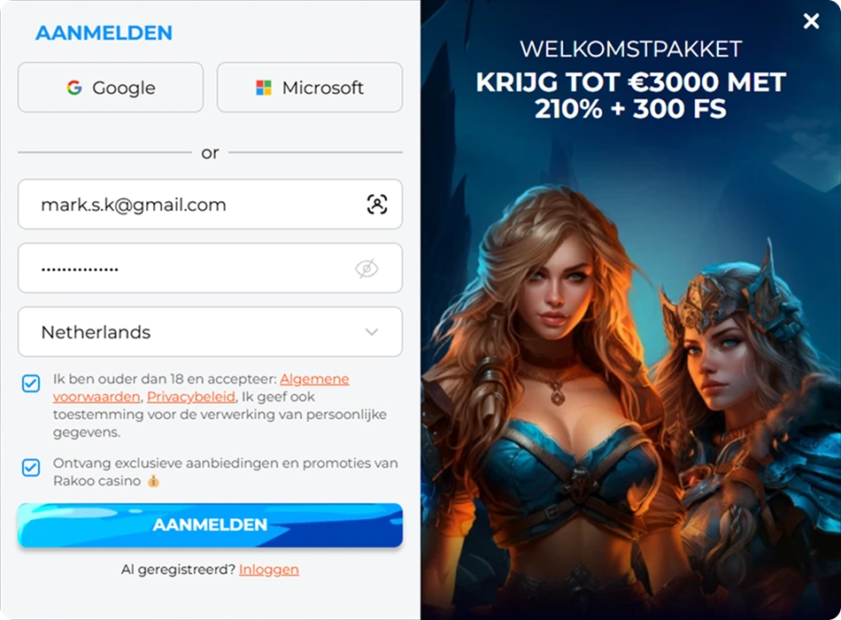 Het registratieproces bij Rakoo Casino is eenvoudig en snel. Volg deze stappen om een account aan te maken:
